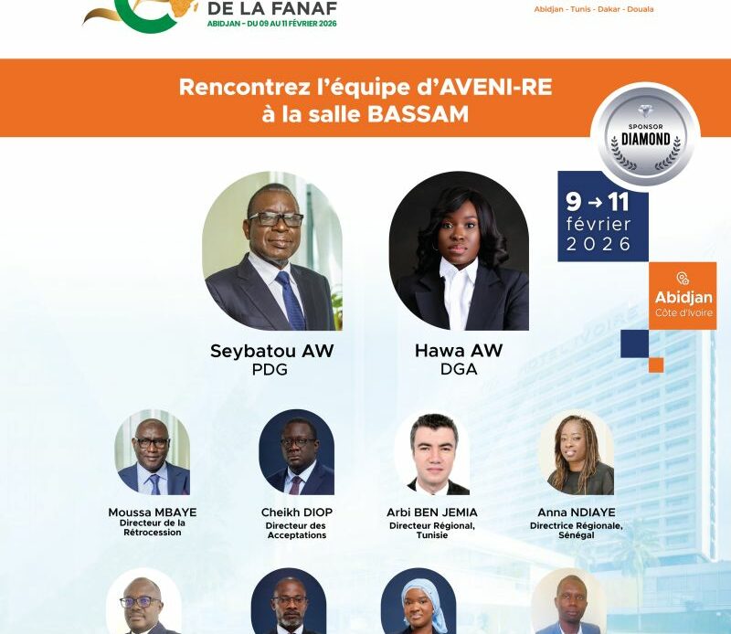 La délégation d’AVENI-RE, conduite par M. Seybatou AW, Président Directeur Général, et Mme Hawa AW, Directrice Générale Adjointe, participera en sa qualité de sponsor DIAMOND, à la 50ᵉ Assemblée Générale de la FANAF. Retrouvez notre équipe à la salle BASSAM pour échanger, partager notre vision et renforcer les partenariats au cœur du secteur assurantiel africain.